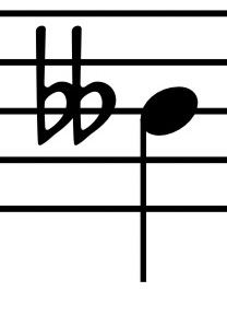 音符の左側にフラットがふたつついていたとき、ダブルフラットと読みます。